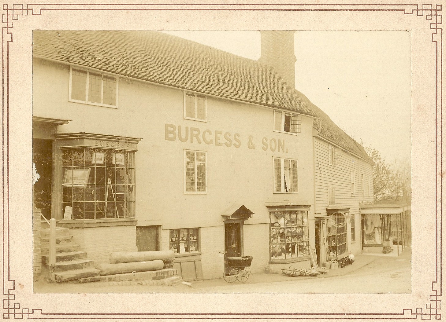 In 1831 William Burgess became the owner of a shop in Goudhurst which was to bear his family name from that date until 2012. Burgess married Anne Gilbert in about 1834 and it was her father and brother, both named John, who were the original owners of the business. A stock book dating from 1832 shows that the shop sold fabric and clothing, such as muslin and, serge, caps and hats, lace collars and edging, as well as some earthenware, candles, shoes and sundry items. The total value of the stock was £502.